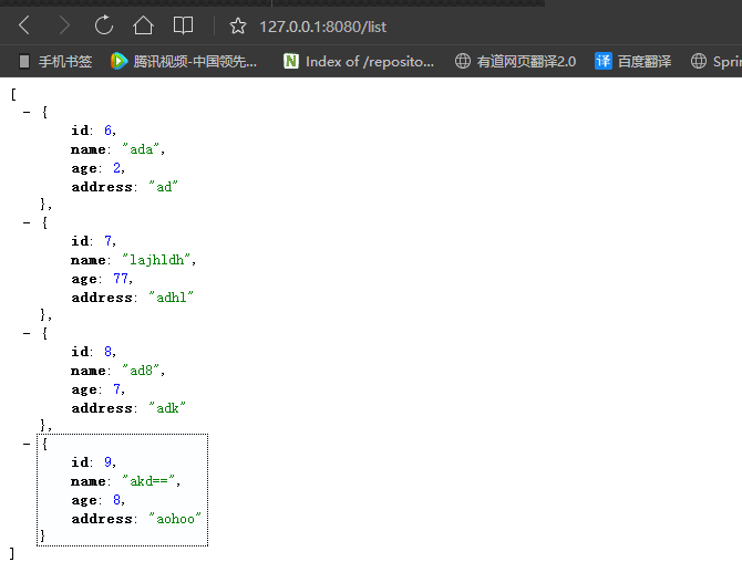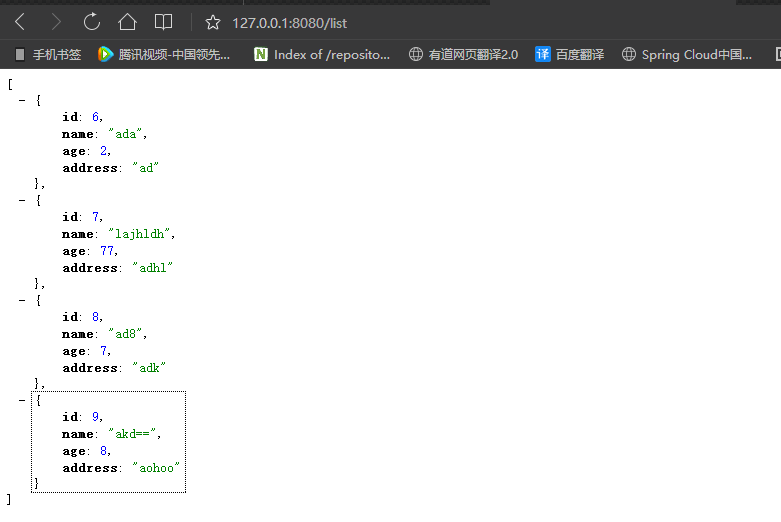 运行项目并查看控制台输出的日志是否存在异常,启动成功后访问地址:127.0.0.1:8080/list,界面输出内容如下图15所示:
