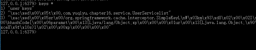 可以看到Redis为我们自动生成的Key让我们很无奈,根本看不懂!那我们以后维护起来就很复杂了。下面我们来自定义Redis生成Key的规则!