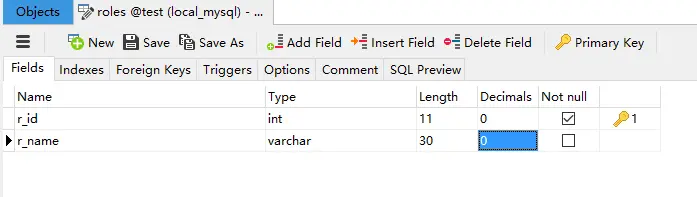 我们用户表结构仅有三个字段,这里只是为了演示我们的安全框架,所以不做太过详细。下面是我们的角色信息表结构如下图4所示: