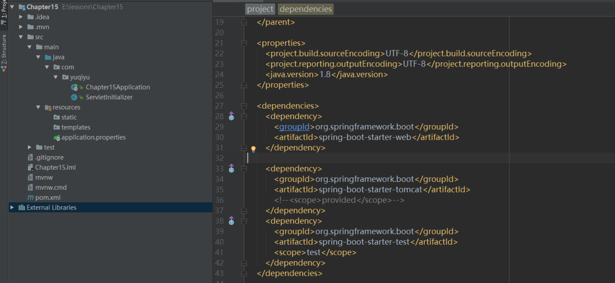 我们直接使用IntelliJ IDEA工具来构建一个SpringBoot项目,预先导入Web依赖,项目结构如下图1所示: