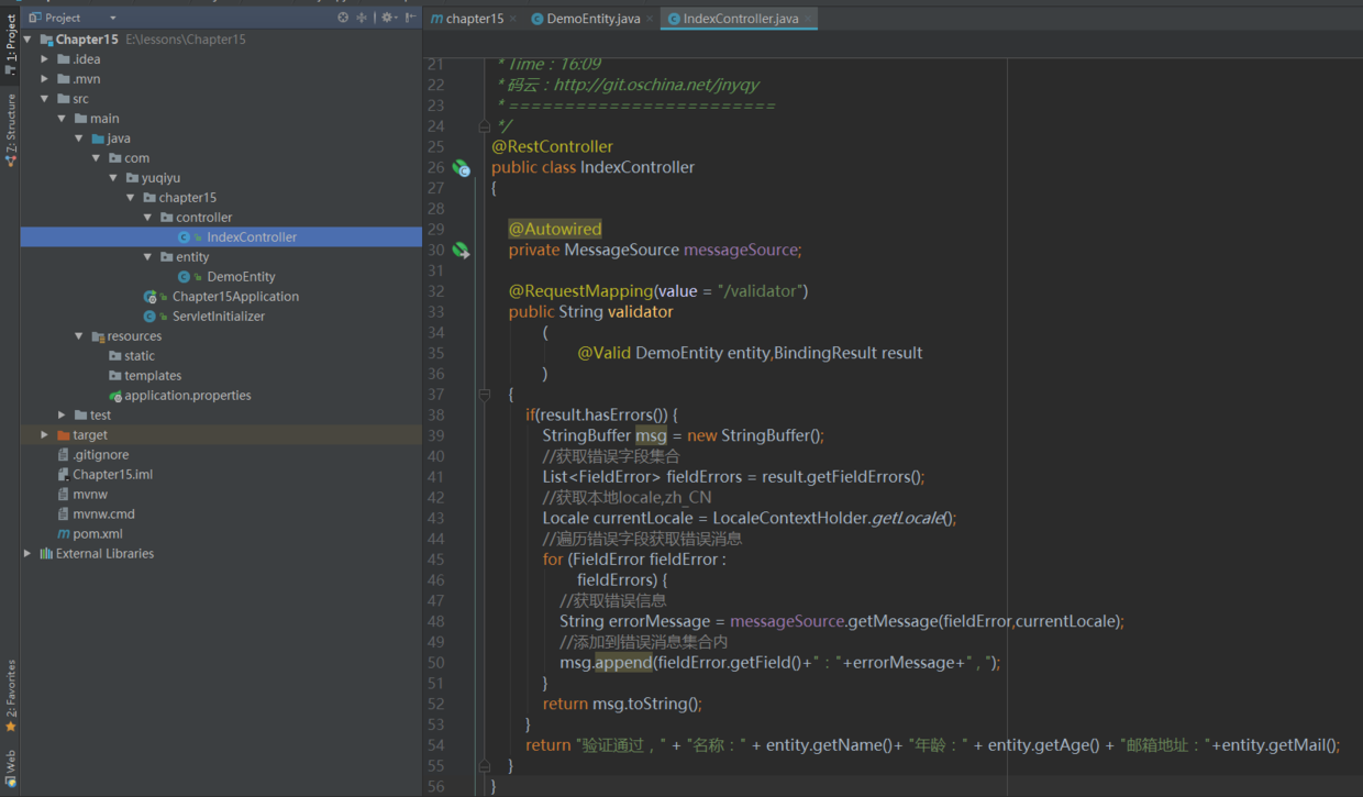 我在DemoEntity创建了三个字段,分别对这三个字段进行了有效性验证。