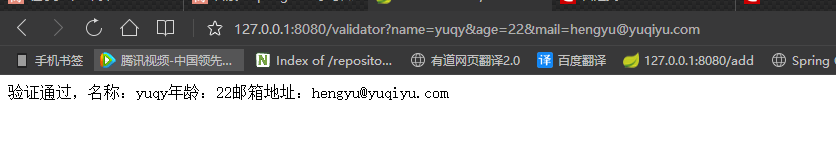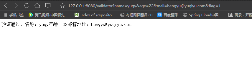 我们使用SpringBootApplication的形式启动项目,启动成功后访问地址:127.0.0.1:8080/validator,界面输出内容如下图6所示: