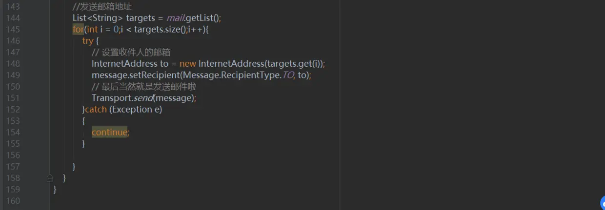 我们创建一个TestMail类来作为测试入口,因为我们的项目是jar形式,所以我们直接新建一个main方法直接调用发送邮件就可以了,如下图14所示测试代码:
