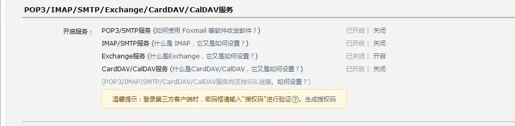我的POP3以及SMTP以及开启了所以这里显示的状态是已开启,如果您第一次使用QQ邮箱的SMTP服务,请点击“开启”并且按照提示步骤完成获取“授权码”即可,授权码就是发送邮件参数的smtp.pwd属性。