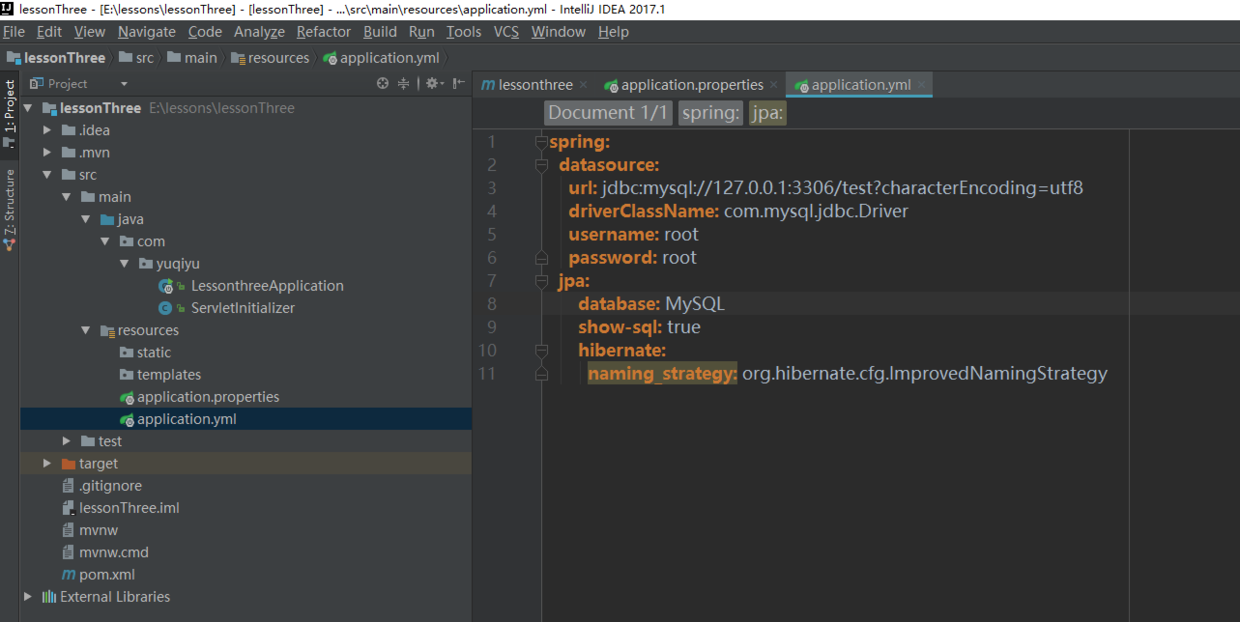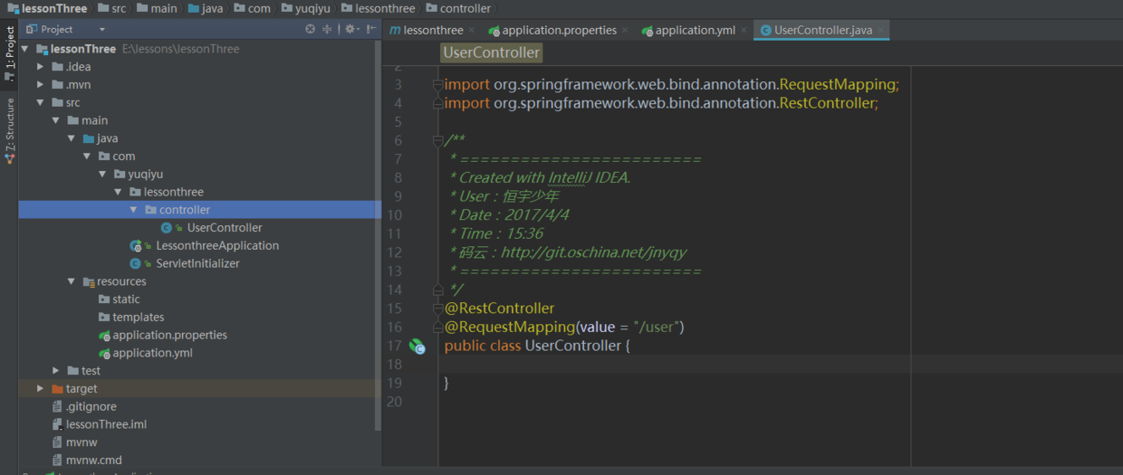 今后我们修改application.properties文件配置为application.yml配置。.yml配置文件与.properties配置要更清晰更有层次感,可以很明了的看懂配置信息。