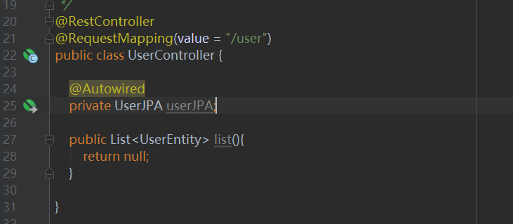 我们并不需要做其他的任何操作了,因为SpringBoot以及SpringDataJPA会为我们全部搞定,SpringDataJPA内部使用了类代理的方式让继承了它接口的子接口都以spring管理的Bean的形式存在,也就是说我们可以直接使用@Autowired注解在spring管理bean使用,如下图11所示: