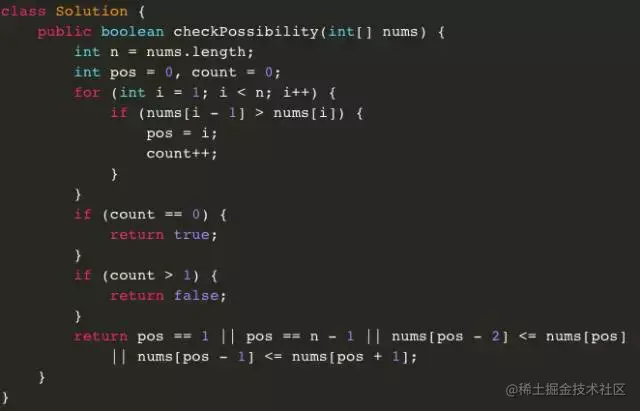 这题是一道简单难度的题,只需分析出去掉一个数后能形成非下降数组的原数组应该有怎样的性质,即可设计相应的算法,做法可以有很多种。给出正确的算法即可hire。