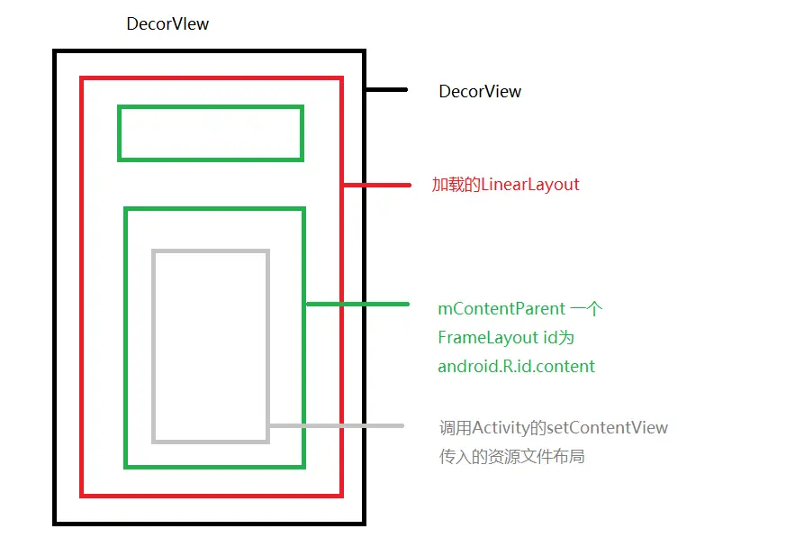 然后通过PhoneWindow的findViewById方法获取到了DecorView中的LinearLayout中的FrameLayout。