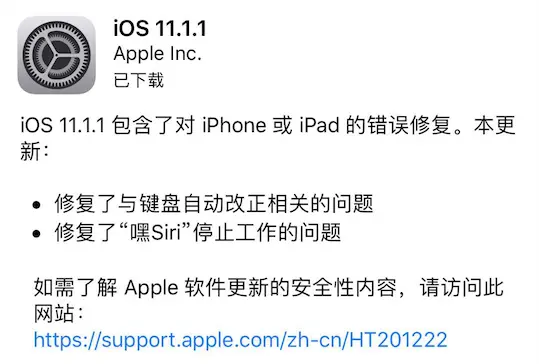 11 月 10 日,IOS 11.1.1 版本正式发布。
