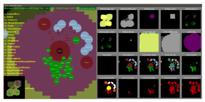 和暴雪合作,基于星际争霸 II 推出的。另外 Malmo 是基于 MineCraft,ViDoom 是第一人称射击类,Maze 是一个简单的即时策略游戏 (RTS),TorCS 是赛车模拟游戏。集成游戏 AI