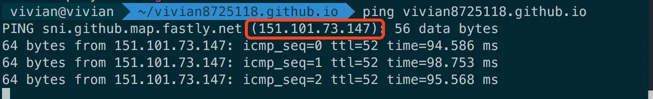 1.ping你自己的yourname.github.io获取到ip地址: