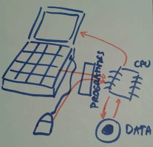 下一个主题是计算机的工作原理,当然是非常粗略的。我是这样告诉他们的: