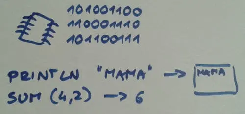 接着,我把重点放在处理器上,告诉他们它使用一种只有0和1组成的非常有趣的语言。然后,当我假装用一种只有A和B的语言说话时,大家都笑得很开心。接着,我解释说,程序员使用编程语言是为了能够更容易地与处理器进行交流。