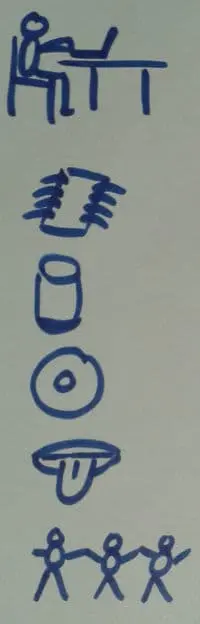为了结束我的“演讲”,我再一次画了一些符号来总结我们讨论的东西。我一边画一边问问题“这是什么?”和“你还记得有关这个的一些什么吗?”诸如此类。一切进行得很顺利。