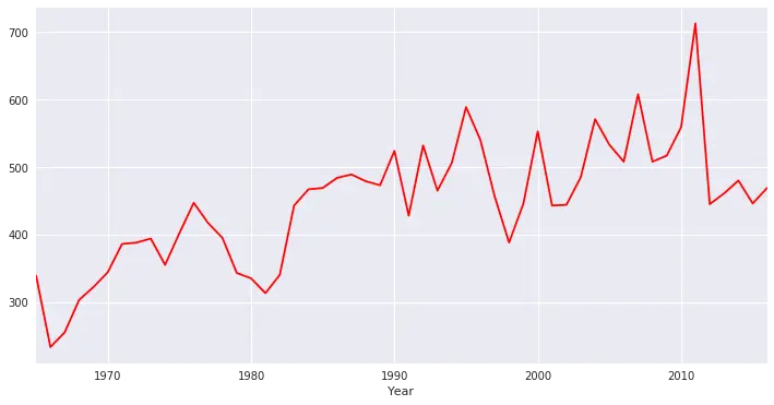 sns.tsplot(temp.ID,temp.Year,color="r")