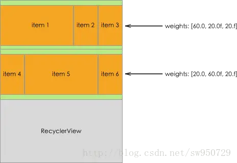 ColumnLayoutHelper, GridLayoutHelper的属性,它们都是提供网格状的布局能力,建议使用GridLayoutHelper,它的能力更加强大,参考下文介绍。默认情况下,每个网格中每一列的宽度是一样的,通过weights属性,可以指定让每一列的宽度成比例分配,就像LinearLayout的weight属性一样。 weights属性是一个float数组,每一项代表某一列占父容器宽度的百分比,总和建议是100,否则布局会超出容器宽度;如果布局中有4列,那么weights的长度也应该是4;长度大于4,多出的部分不参与宽度计算;如果小于4,不足的部分默认平分剩余的空间。