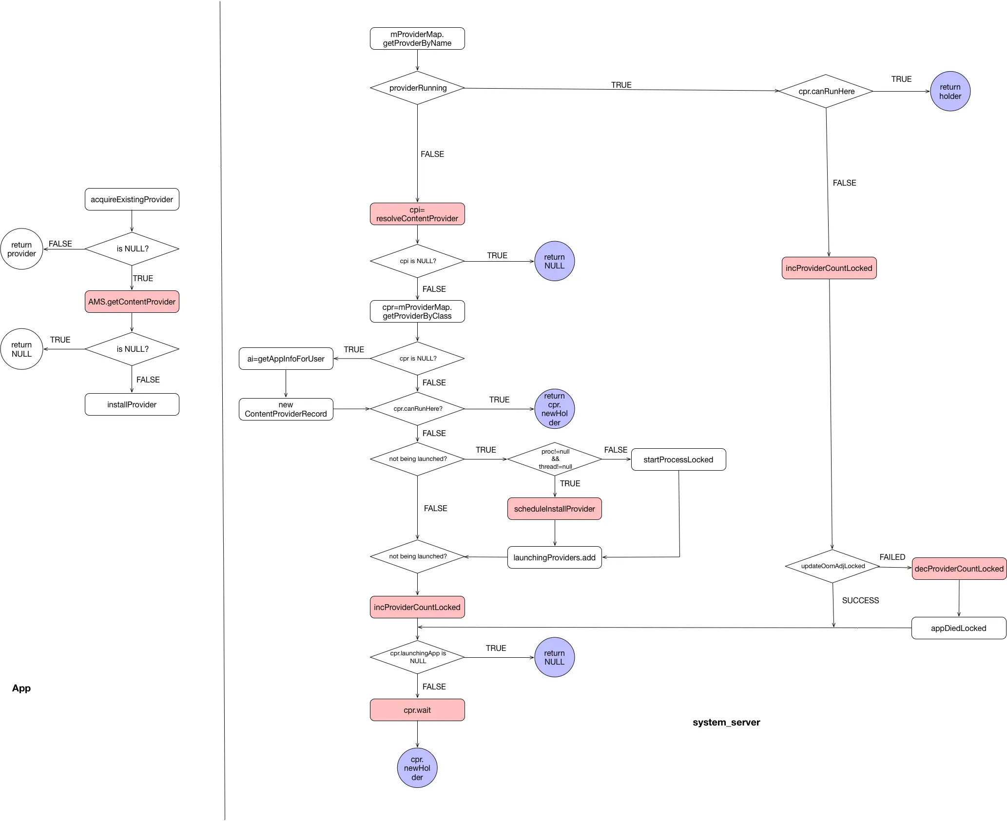 ContentProvider相信大家都耳熟能详了,在安卓系统越来越注重系统安全的前提下,不知道大家好不好奇provider是如何在Android层层安全措施之下使进程之间实现数据增删改查操作的。仔细想来,我们大概能猜到,安卓进程间通信惯用的"伎俩"是binder call,ContentProvider的实现很有可能就使用AMS当作provider的客户端与服务端的中间人。本篇文章,我将详细分析客户端app是如何请求到在其他应用进程运行的ContentProvider的,文章最后会附带着这期间AMS和APP两端涉及到的数据结构。