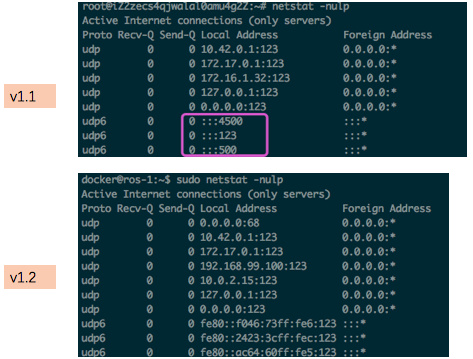 启动之前的Rancher v1.1版本并对比v1.2版本,可以看到如下现象, ipsec网络正常,但在新版中netstat却看不到端口开放: