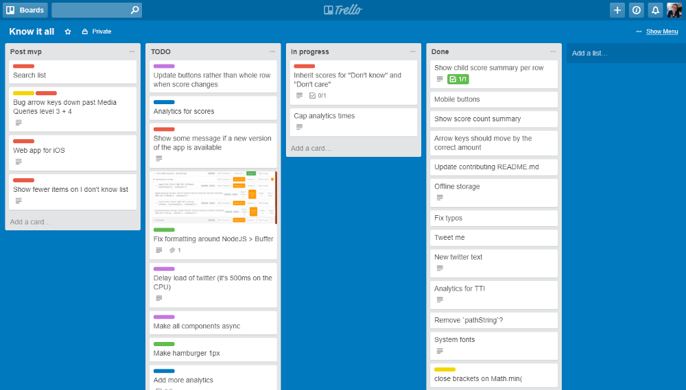 我总是用 Jira 做大项目,独立项目用 Trello,这两者我都很喜欢。