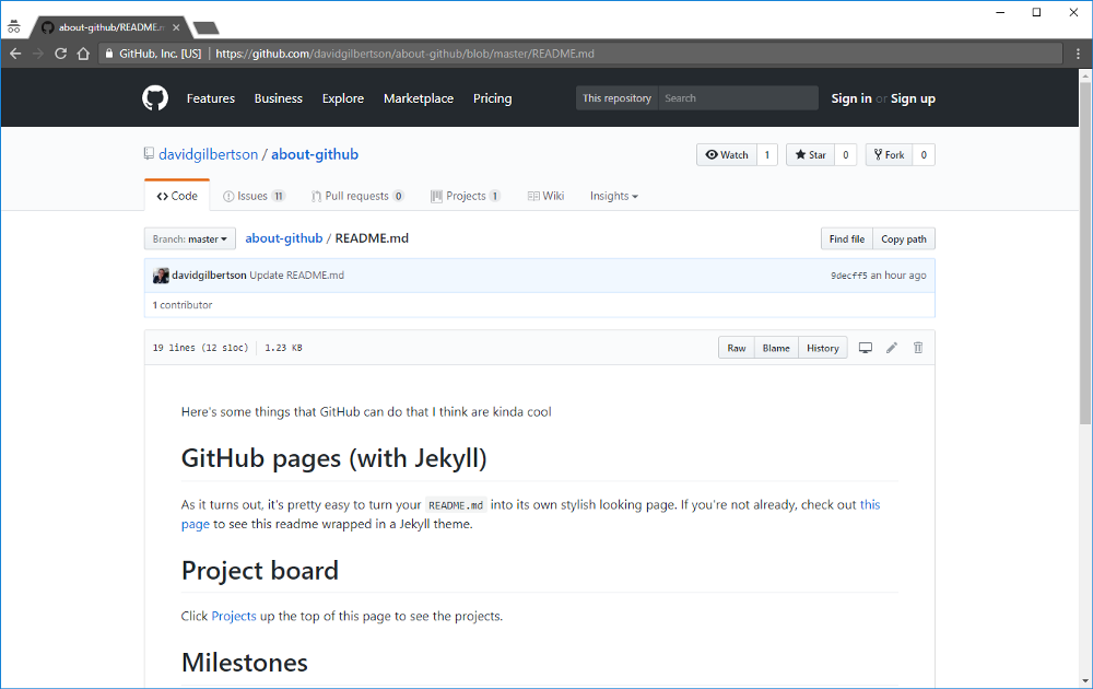 以最简单的方式,GitHub Pages + JekyII 将以最漂亮的主题来呈现你的 README.md,例如,你可以看一下 about-github 的自述文件。