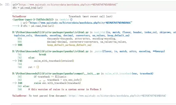 #XML content does not seem to be XML: #'https://www.aqistudy.cn/historydata/monthdata.php?city=%E5%8C%97%E4%BA%AC'