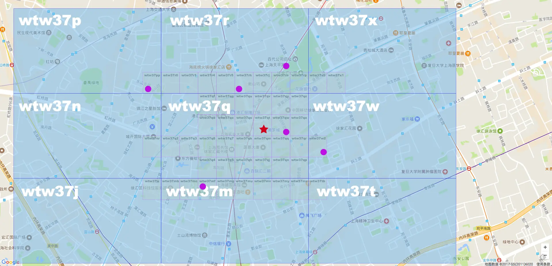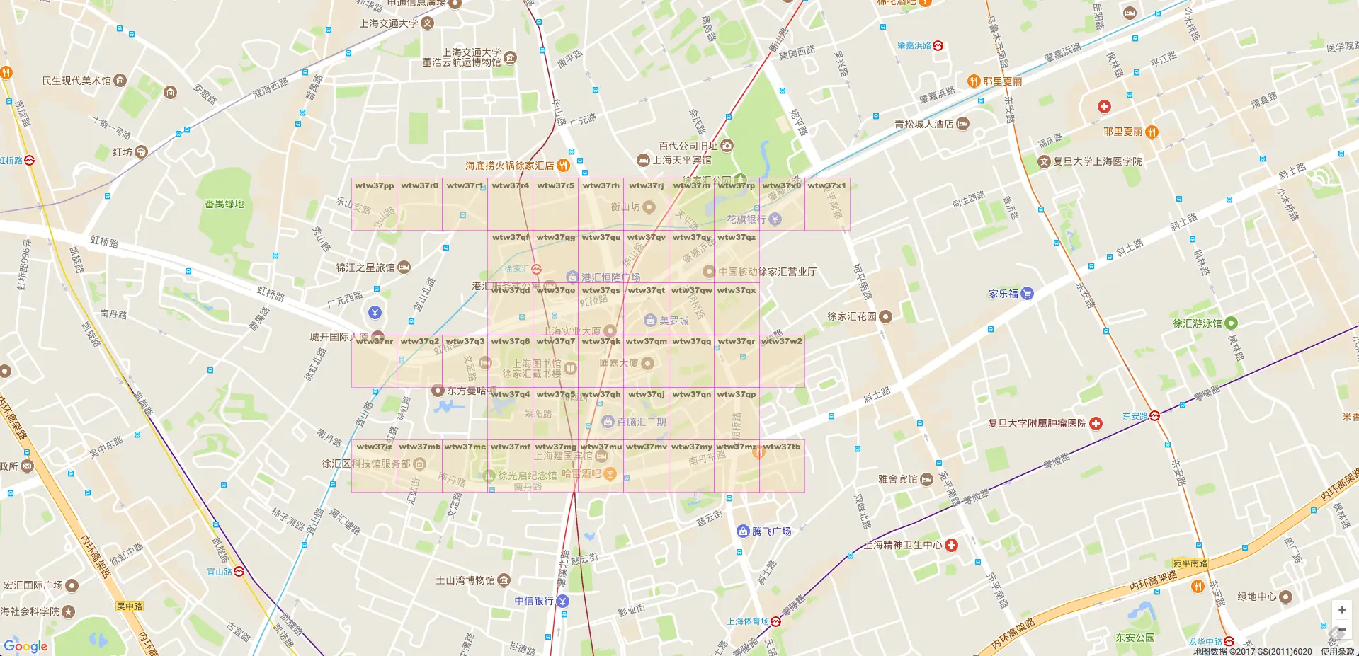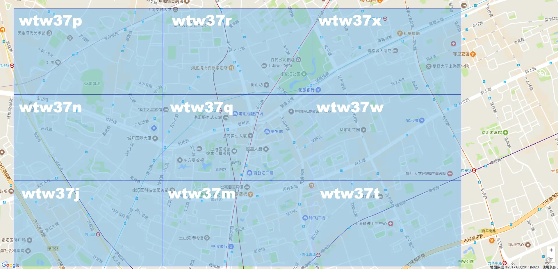 从地图上可以看出,这邻近的9个格子,前缀都完全一致。都是wtw37。