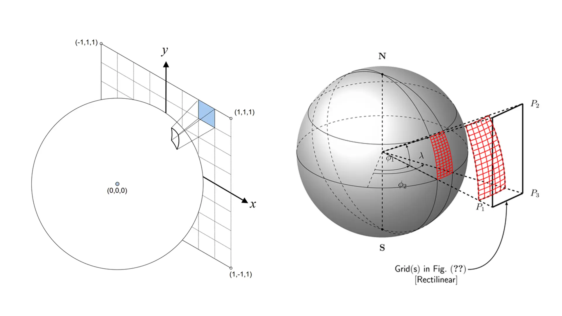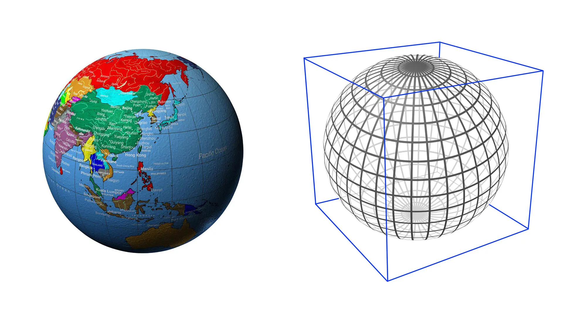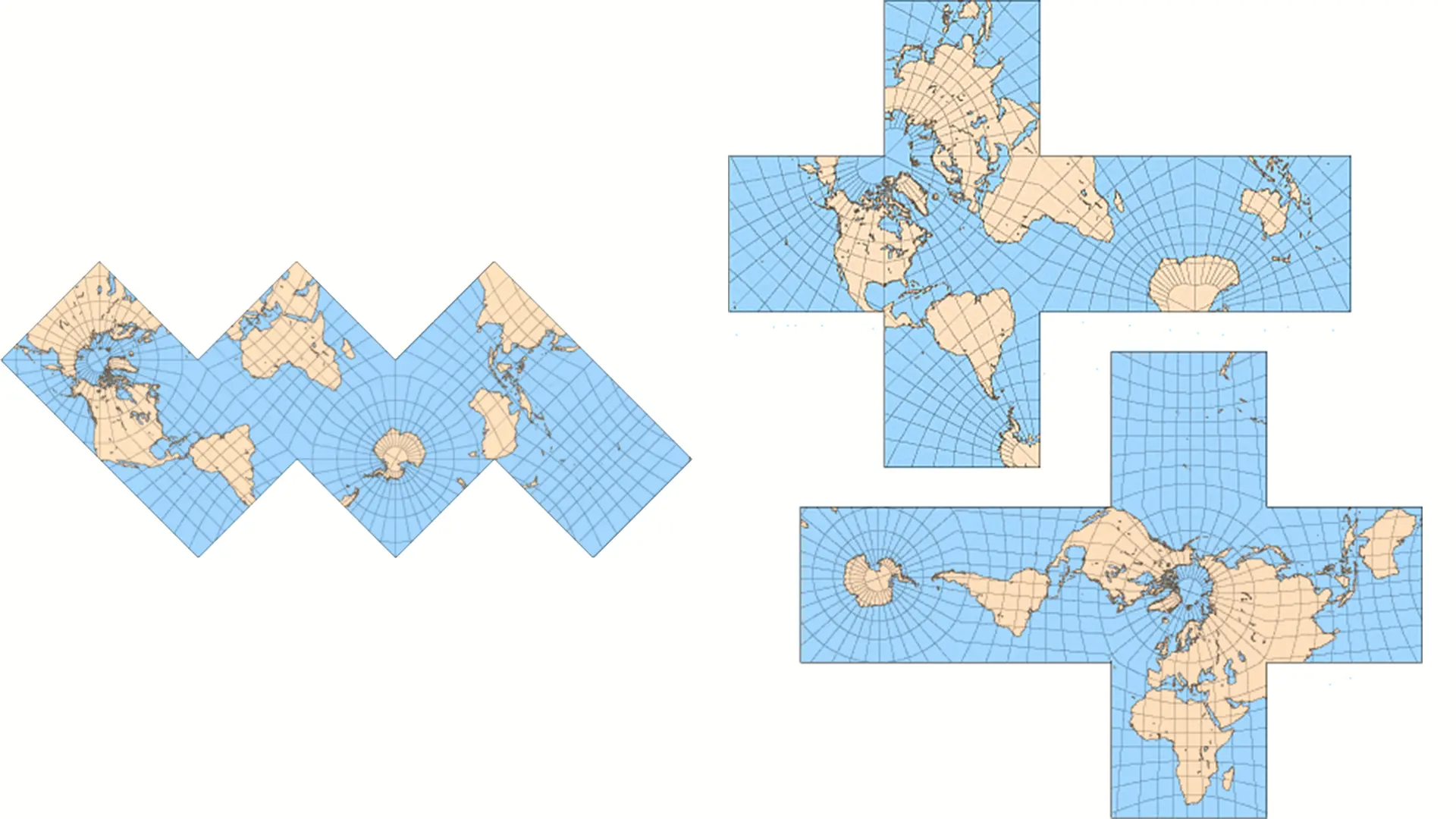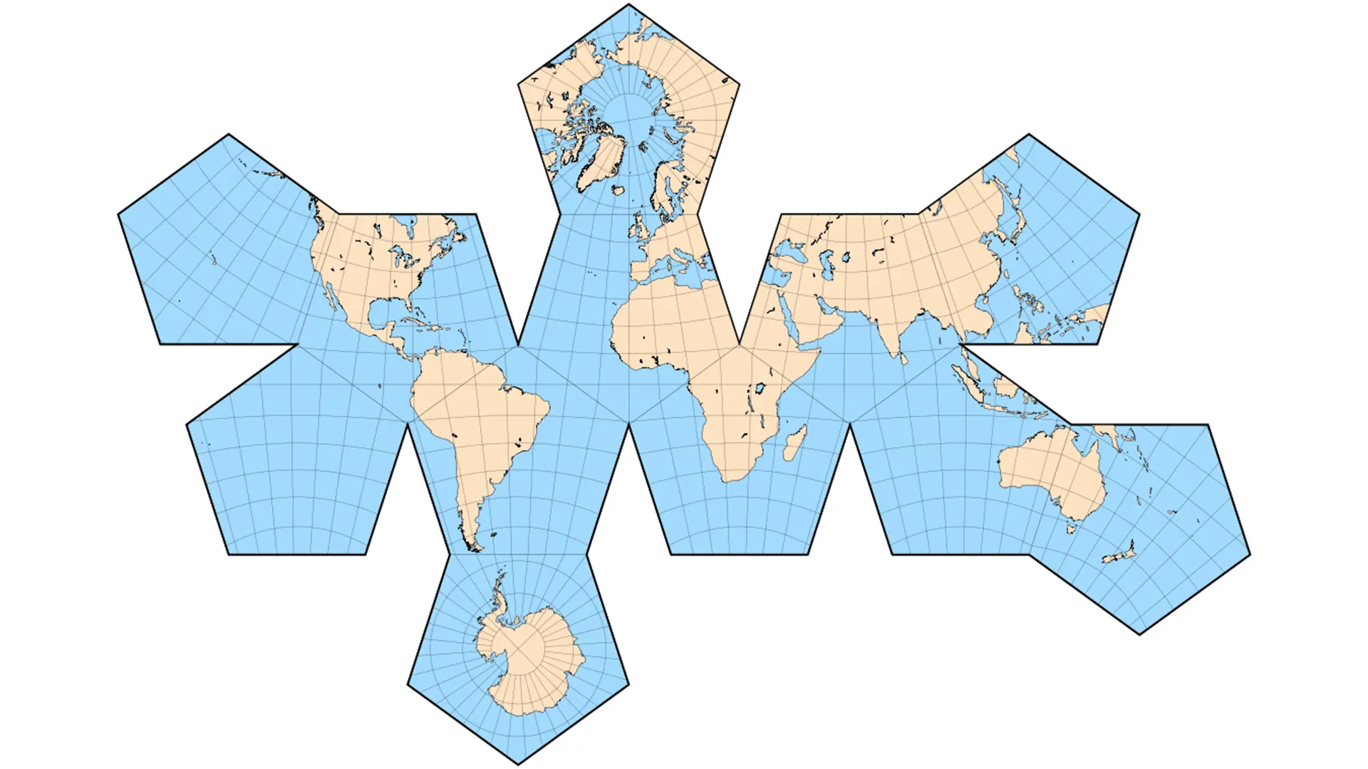 这张图左上角的顶点和右下角的顶点在地球上是重合的。如果把这个地图重新还原成球面,那么就是整个球面中间挖空了一个多边形。