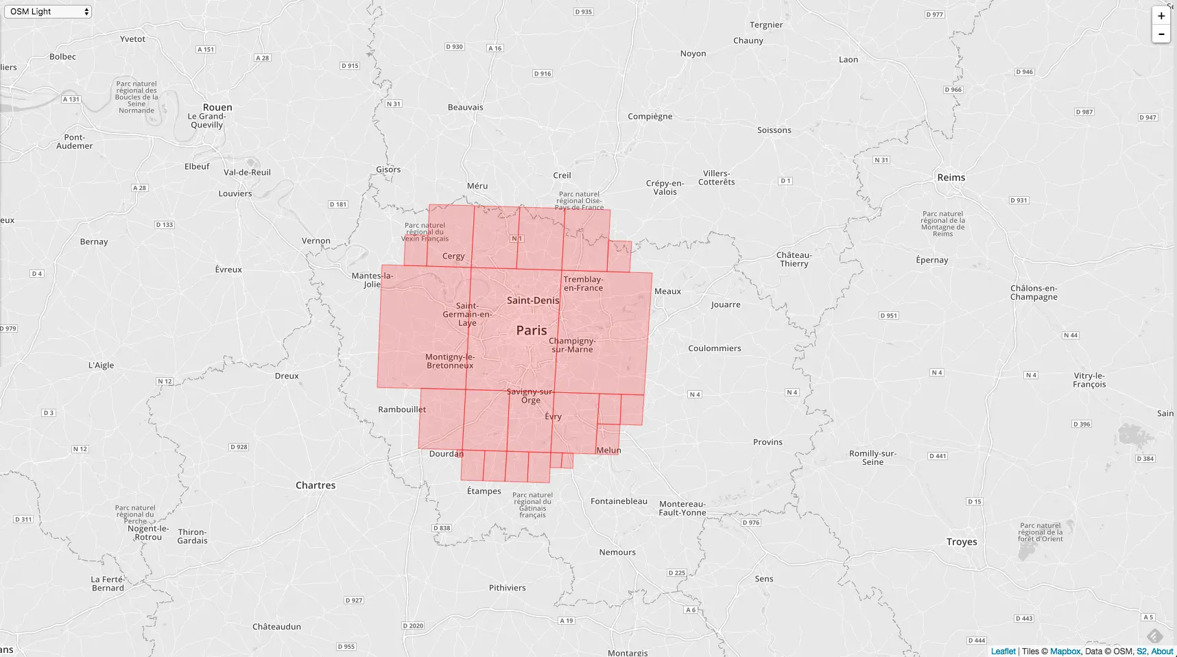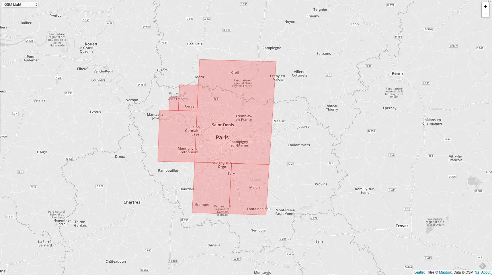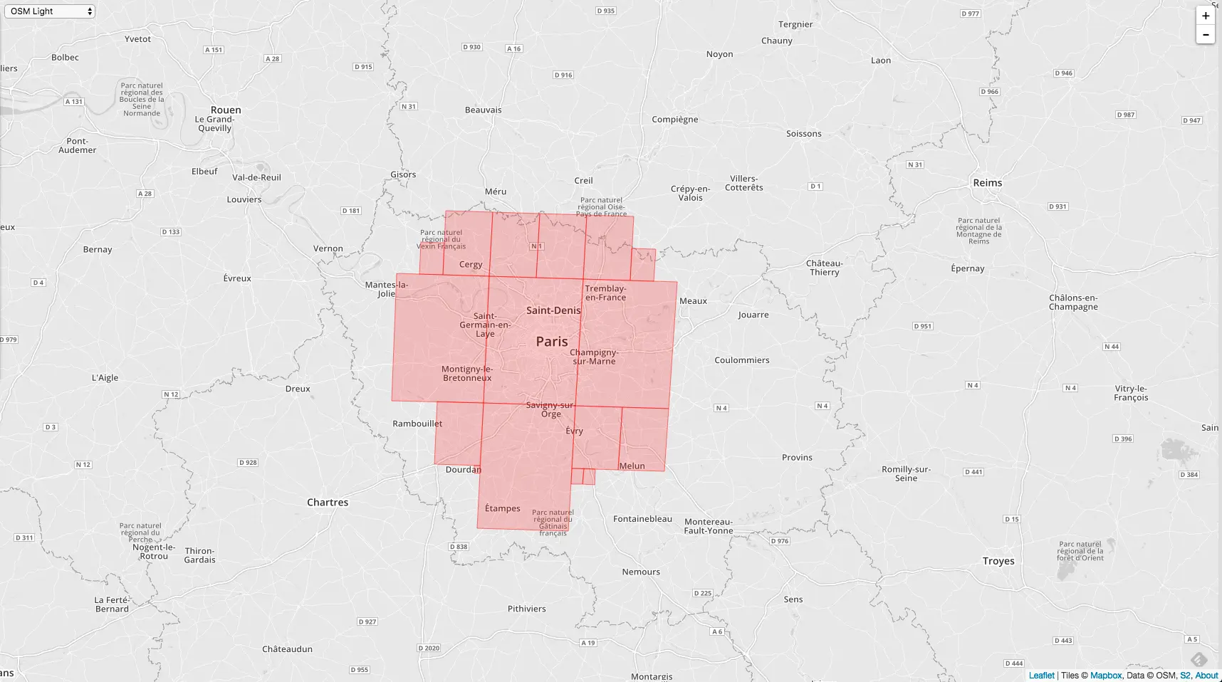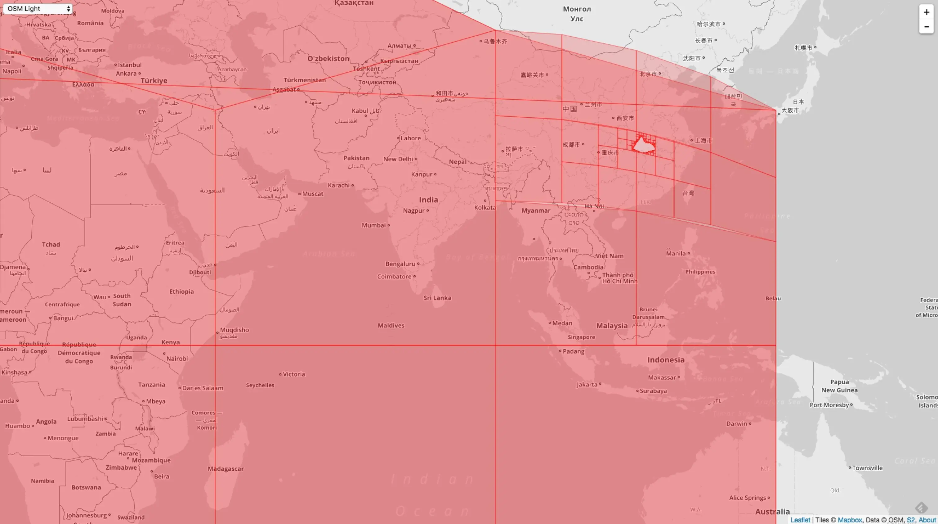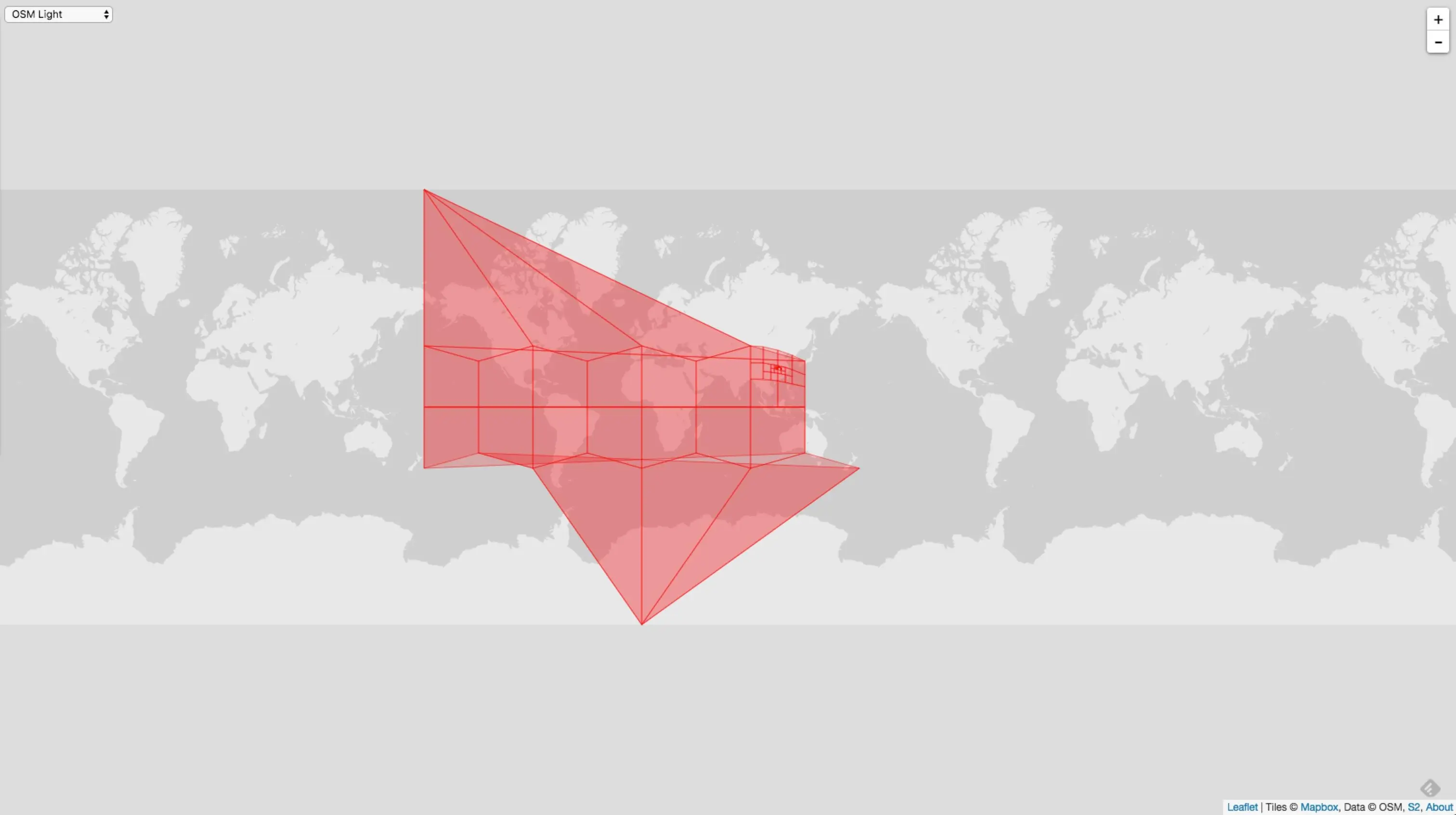 相同的 MaxLevel = 20,MinLevel = 1,MaxCells 不同,覆盖的精度就不同,下图是 MaxCells = 100 的情况: