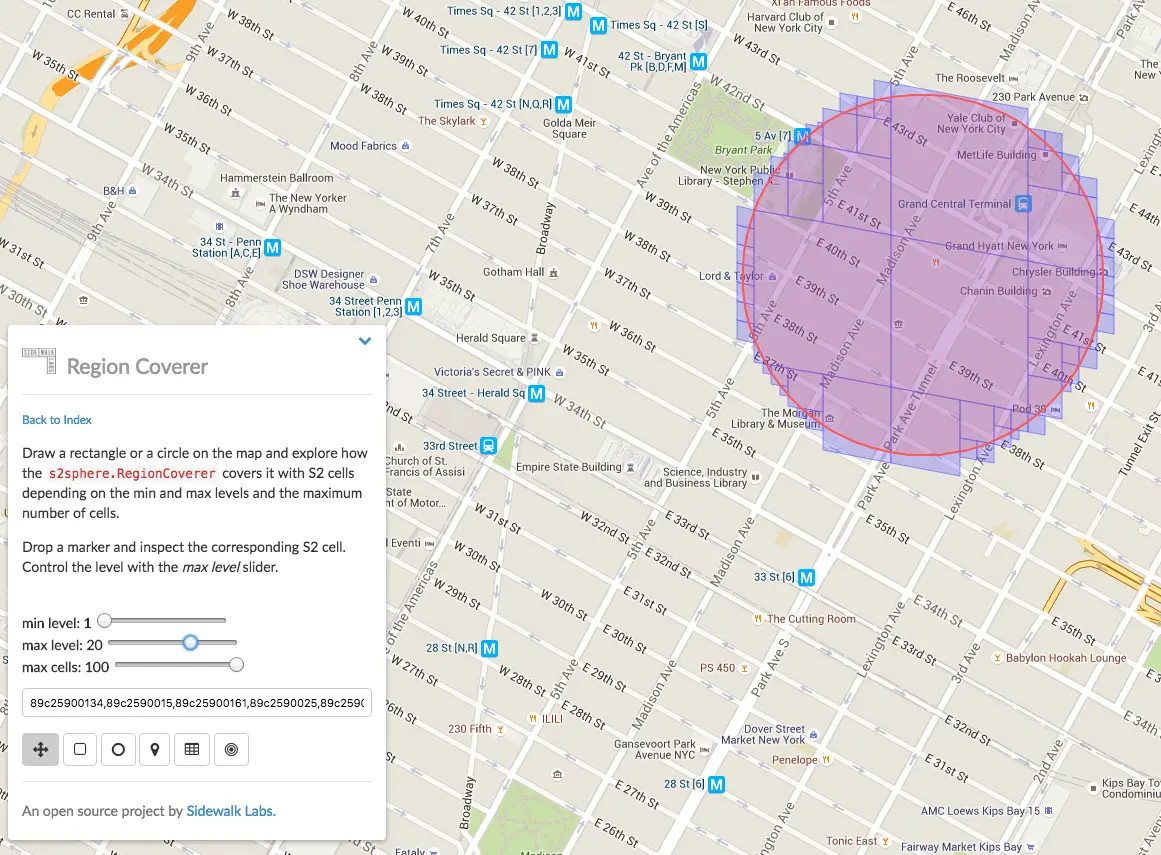 defaultCoverer := &s2.RegionCoverer{MaxLevel: 20, MaxCells: 1000, MinLevel: 1}