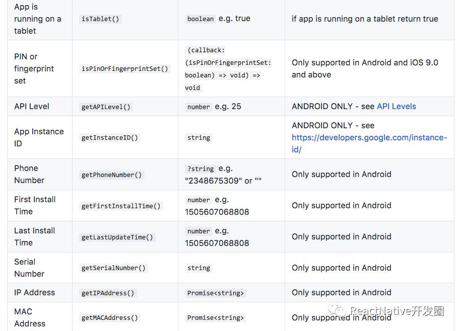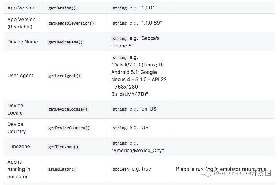 该组件的详细说明和示例可以进入GitHub查看。 GitHub地址:https://github.com/rebeccahughes/react-native-device-info