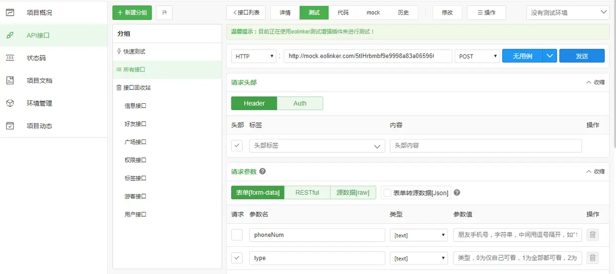 编写完接口文档后,为验证接口返回值是否符合接口文档所描述的预期结果,我是需要对接口进行测试。eolinker也提供接口本地一键化测试功能,只要将信息录入eolinker接口管理平台,就不必将接口信息重新复制到测试工具的操作,这让我觉得很方便。我只需要点击测试页面,输入测试参数值,便可完成测试。也提供mock测试功能,通过设置假数据以验证接口的可行性。还提供自动化测试,应对不同测试场景。
