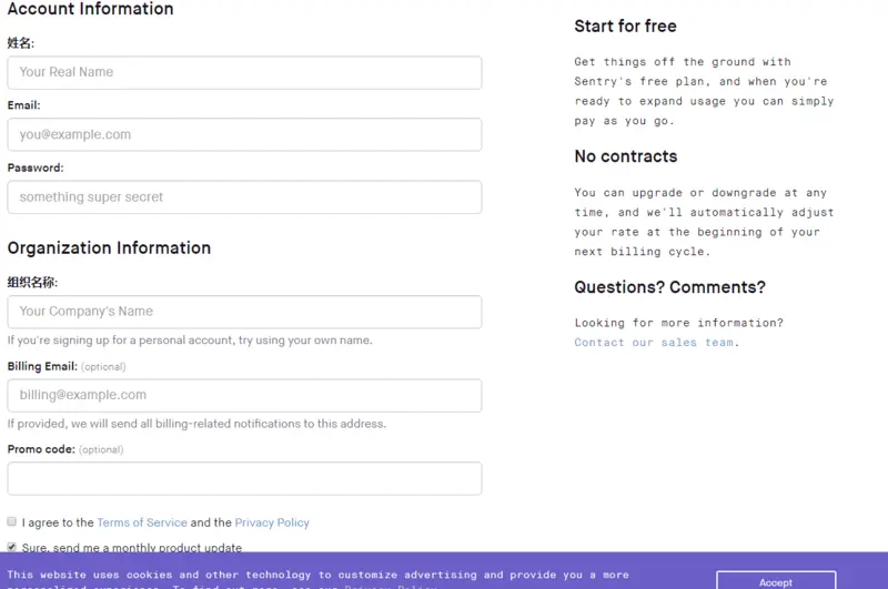 如果项目允许,你可以在sentry申请一个免费账户,管理你项目上传的运行时错误。也可以在公司搭建一个sentry。关于搭建sentry这块与本文无关就暂时不说了,可以查看。