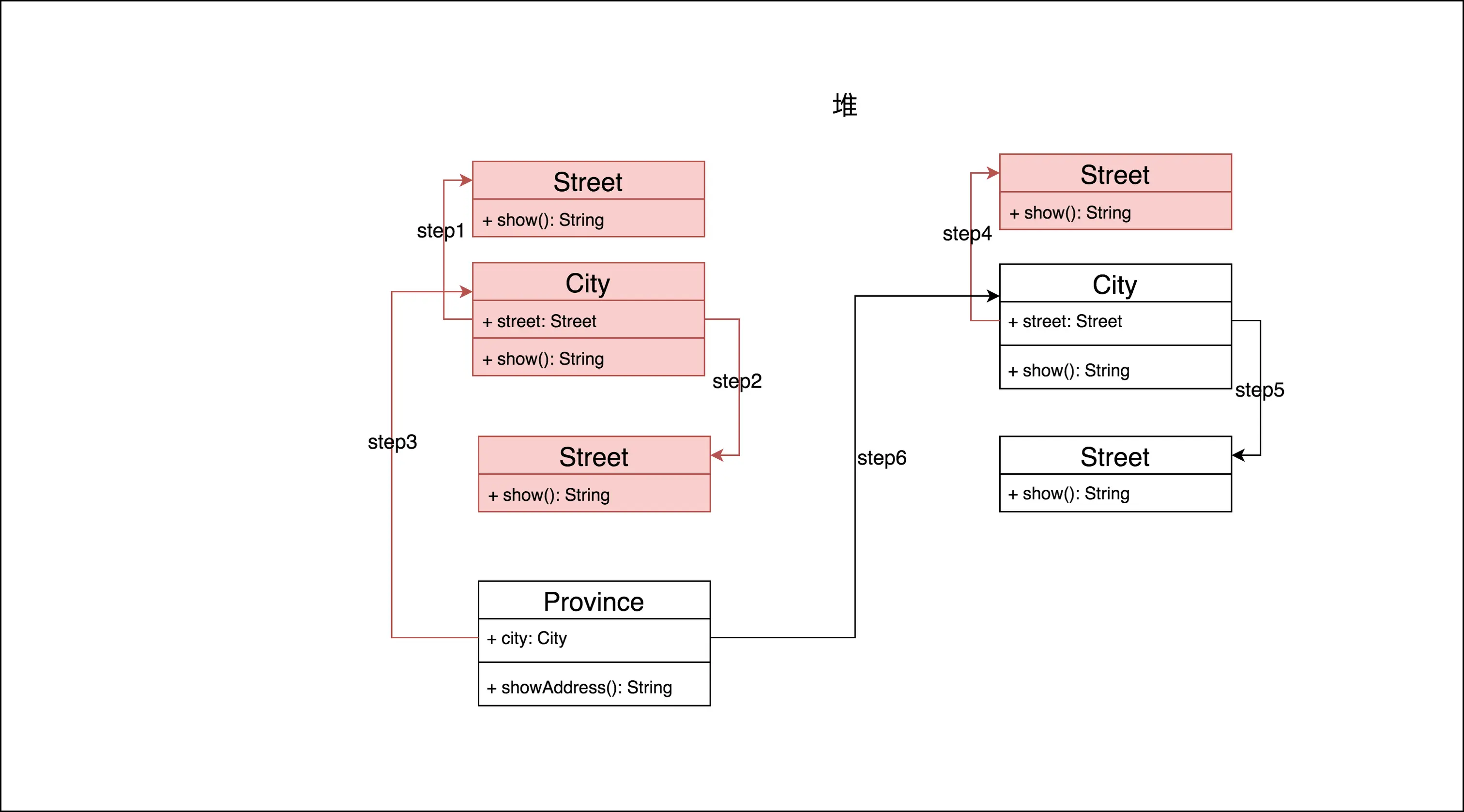红色的就变成垃圾了,所以在这个过程中Street被new了两次;继续分析创建Province以及建立依赖的过程: