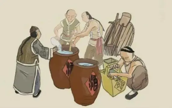 而在中国几千年的历史中,白酒的酿造就是将五谷杂粮与曲饼一起捣碎然后装进坛子里,通过自然发酵的方式来酿造白酒。笔者曾有幸见识过古老初级的传统的酿造方式来酿造白酒的过程:将煮熟的地瓜与捣碎的曲饼混合后放在坛子内封存起来,过几个月之后便可饮用。