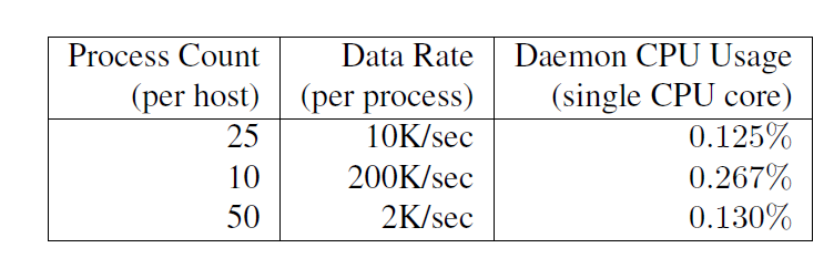 表1:Dapper守护进程在负载测试时的CPU资源使用率