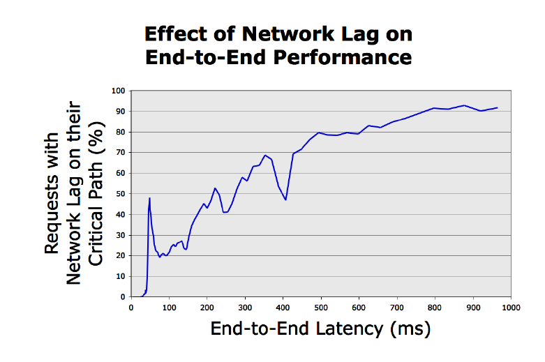 图7:全局搜索的跟踪片段,在不常遇到高网络延迟的情况下,在沿着关键路径的端到端的请求延迟,如图所示。
