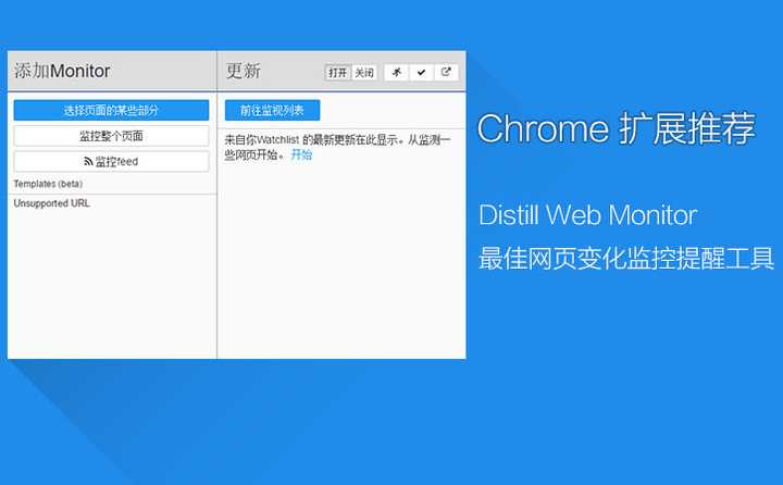 Chrome 浏览器有很多超级实用的扩展程序(或叫做插件),它们往往可以替代很多我们需要手动去操作的工作,帮助节省时间。而网页变化监控类的插件就是典型的这种扩展,比如追美剧需要关注最新字幕,某网站的抢购活动,又或者是某个自己喜欢网站又发了新文章,没有插件的情况下只能靠第六感或者频繁F5了。之前Win7en乐园一直使用一款名为:Page Monitor 的扩展,不过渐渐的发现它虽说简单易用,但是在监控网页某个元素的时候经常不能起作用。于是,在寻找新扩展的过程中发现了一款名为“Distill Web Monitor”的网页监控扩展程序,Distill Web Monitor也是本次要和大家详细介绍的强大扩展工具。