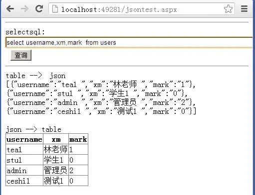 这是测试从数据库获取数据并table和json互转结果