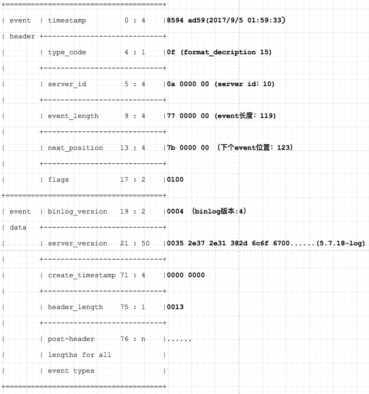 Start: binlog v 4, server v 5.7.18-log created 170905 01:59:33② table map event
