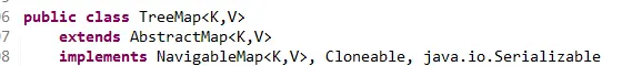TreeMap类有多个类型,它的主要类型是AbstractMap,这是一种java的聚集;而Cloneable接口则给出了一个次要类型,这个类型说明当前类的对象是可以被克隆;同时Serializable也是一个次要类型,它表明当前类的对象是可以被序列化的。而NavigableMap继承了SortedMap,因为之前说到过,子类型是可以传递的,因此对于TreeMap来说,SortedMap(或者说NavigableMap)表明这个聚集类是可以排序的。