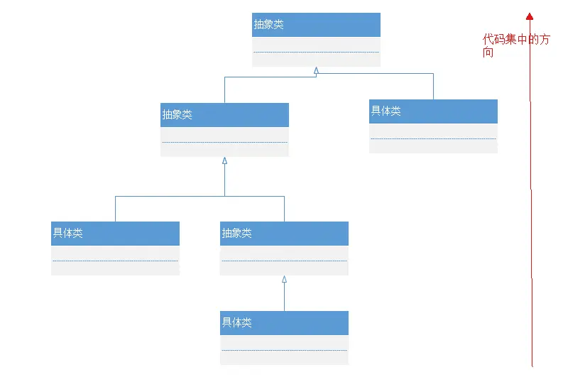 在一个继承等级结构中,共同的代码应当尽量向结构的顶层移动,将重复的代码从子类中抽离,放在抽象父类中,提高代码的复用率。这样做的另外一个好处是,在代码发生改变时,我们只需要修改一个地方【因为共同代码均在父类中】。