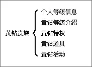 如果单纯的按照上面概括的信息罗列,则可以规划出一个黄钻贵族的网站,树状图如下: