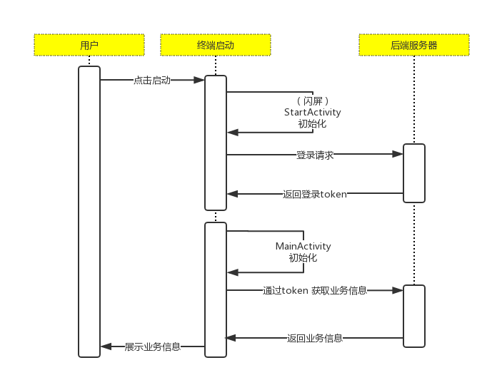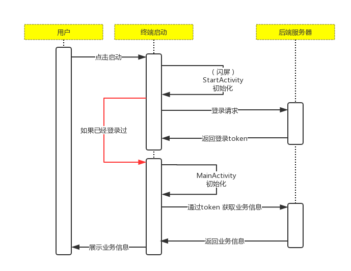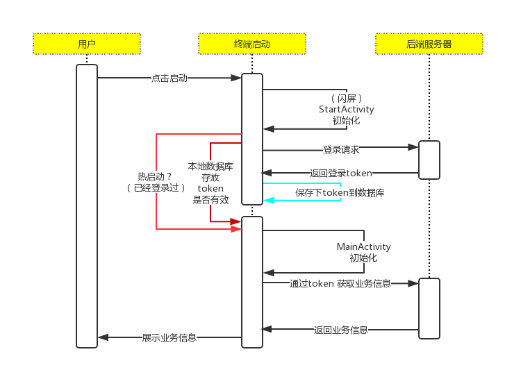 用户点击桌面App 到进入主页面过程,最初版本流程如下: