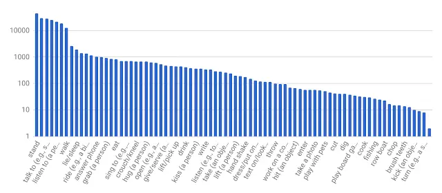 | AVA 原子动作标签的分布。X 轴中显示的标签只是我们词汇的一部分。 |