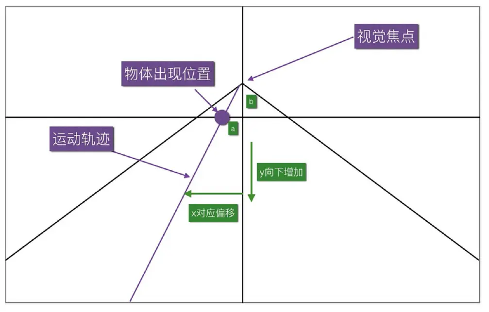 以篮球初始位置(或底部)为原点确立一个视觉焦点,在篮球运动的过程中根据篮球在Y轴上的位置计算其缩放比例,计算公式如下: