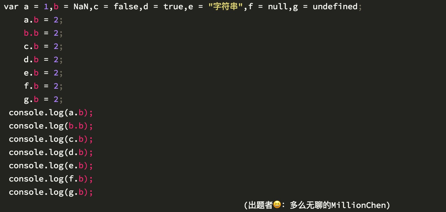 一道js题目,你若能全部答对,我服 MillionChen 2017-11-20 225 阅读1分钟 由于现在前端工程话的兴起,为什么javascript的"use strict"重要性,最近看了一下基本类型,在非严格模式下情况,研究出几个无节操的题目。 请各大javascript高手来测