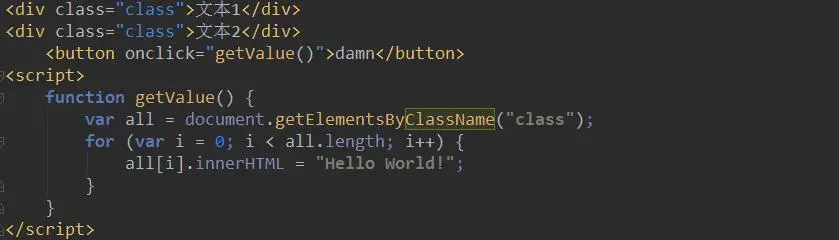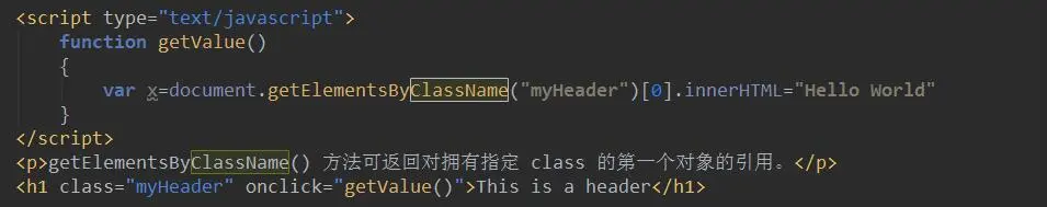 getElementsByClassName() 方法返回文档中所有指定类名的元素集合,作为 NodeList 对象。