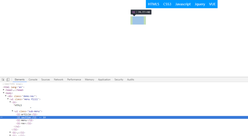 .demo-nav li ul{height: 0;overflow:hidden;}隐藏,在显示的时候再设置.demo-nav li:hover ul{overflow: visible;}。这一步不能省,否则会出问题。如果不加,实际上子菜单ul,以及子菜单ul下面的li一直在页面上,如果鼠标移上去子菜单ul,以及子菜单ul下面的li。那么实际上也会触发父级li的hover。