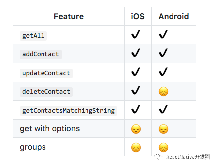 React Native通讯录联系人组件,名叫:react-native-contacts,可以用来增加、读取、修改、删除、搜索手机通讯录中的联系人信息,兼容IOS和安卓双平台。