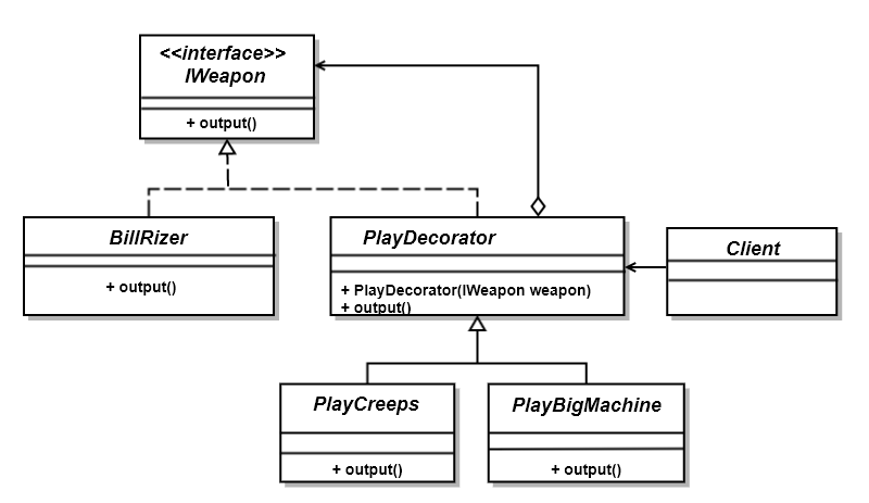 1.装饰模式下武器输出类图